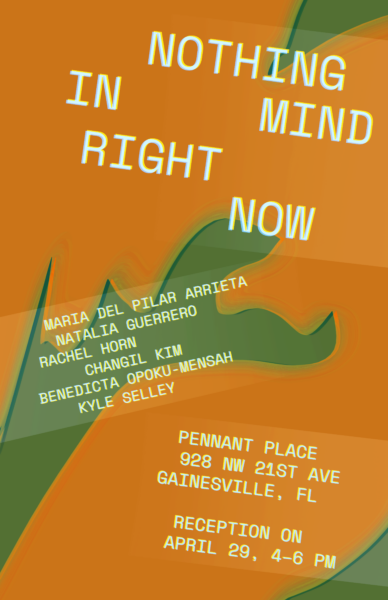 Nothing In Mind Right Now is the closing exhibition of Making Publics, a graduate seminar at the University of Florida School of Art + Art History led by Conrad Cheung (Assistant Professor of 3D + Extended Media). The title came from a student’s offhand response when asked what to call the show. A semester of intense self-theorization, strategic mapping, and real-world testing closes at Pennant Place, on April 29, from 4–6 pm. Join us!